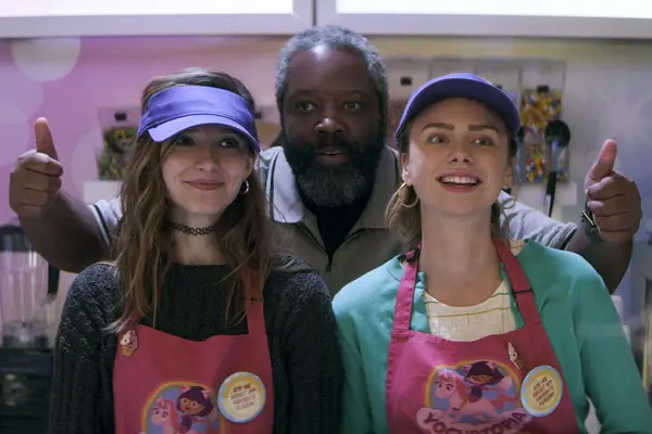 Kadeem Hardison, centrum, med Anjelica Bette Fellini, vänster, och Maddie Phillips, höger (Netflix)
