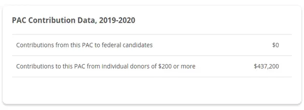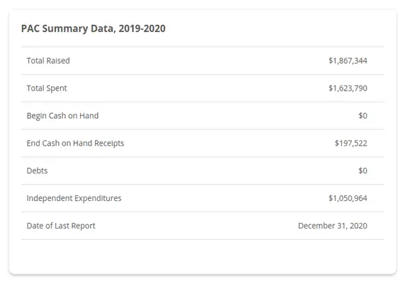 En oberoende rapport säger att verkligen amerikan enligt uppgift spenderade mer än 1 miljon dollar på federala val under 2020 -cykeln. Här är sammanfattningsdata för 2020 nedan.